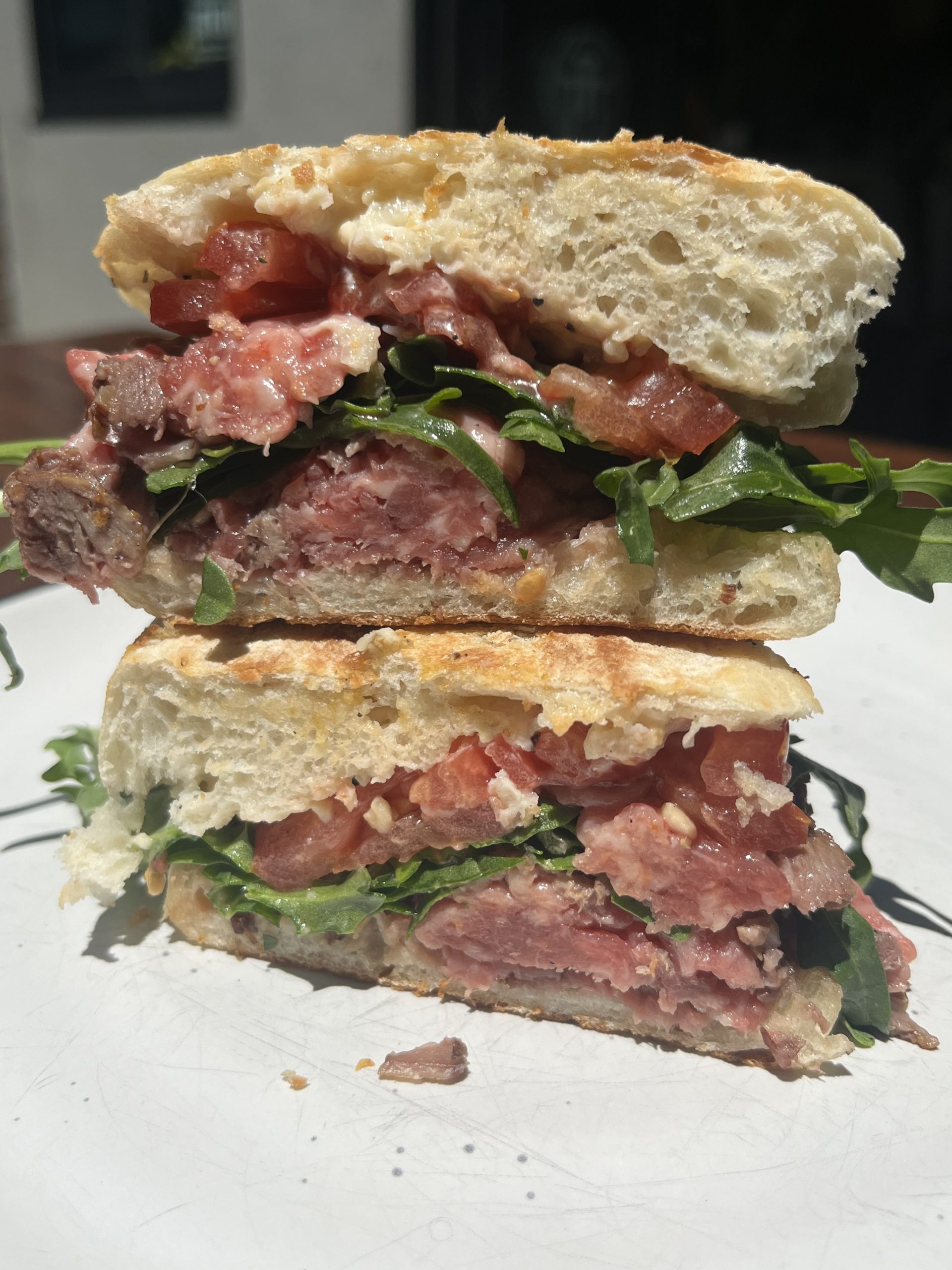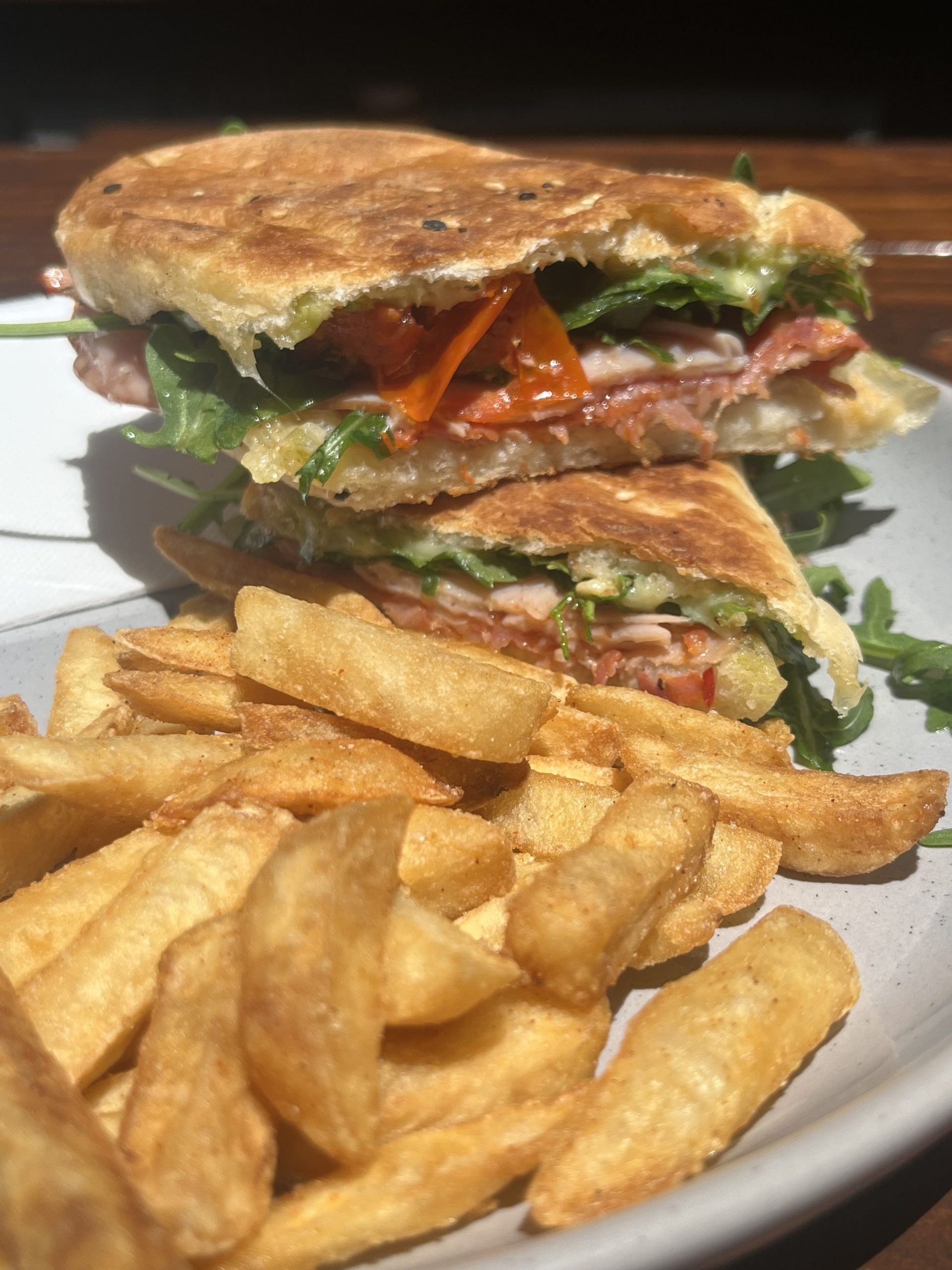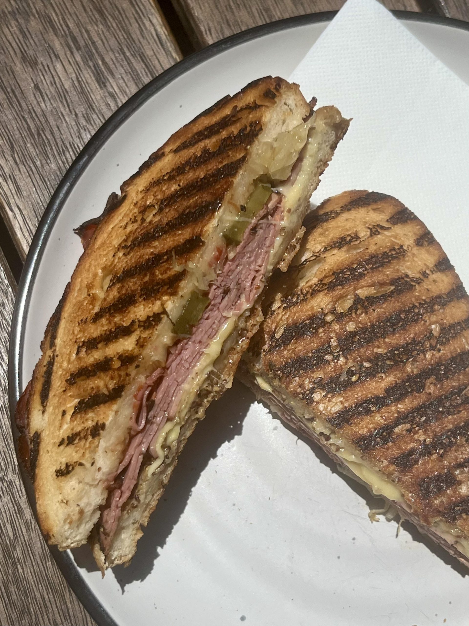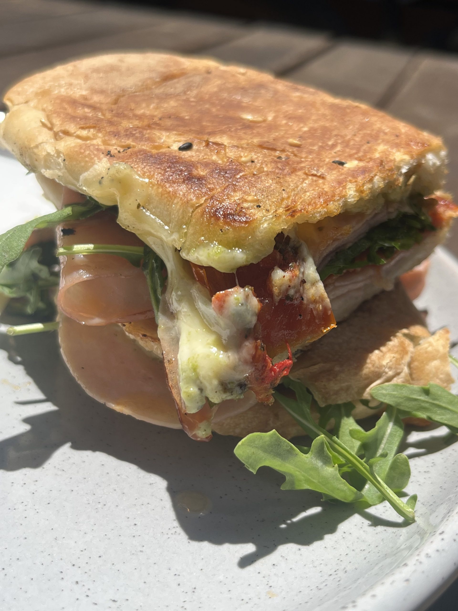 Sourdough, avocado, goat’s cheese, soft herbs, pistachio dukkha, poached egg, lemon (V, VG*, GF*)